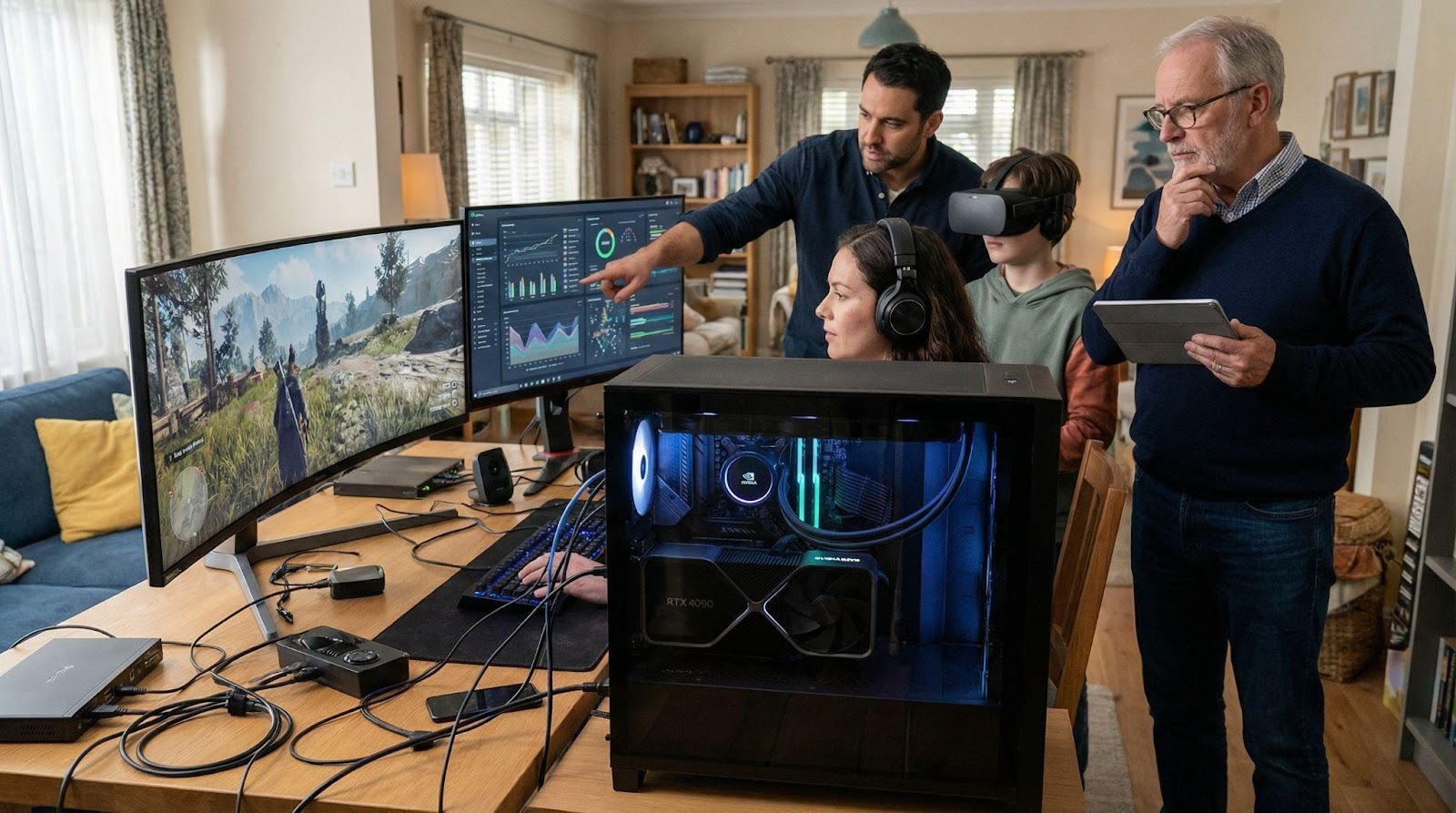 Sim racers running triple-monitor setups (rendering 11,520 x 2160 pixels) or high-fidelity VR headsets in titles like Assetto Corsa Evo or Microsoft Flight Simulator 2024 need consistent frame times above all else. A frame drop in a standard game is annoying; a frame drop in VR causes motion sickness. The 4090 provides the overhead needed to maintain locked refresh rates in these demanding scenarios, preventing the micro-stutters that ruin the illusion of speed.